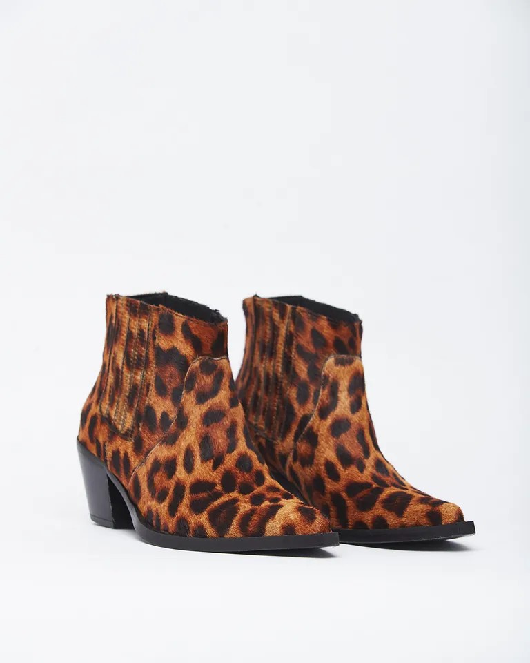 Botineta de caña baja con diseño animal print. Calzado versátil para completar looks urbanos con estilo y personalidad, ideal para el uso diario gracias a su diseño de taco cómodo y caña corta.
