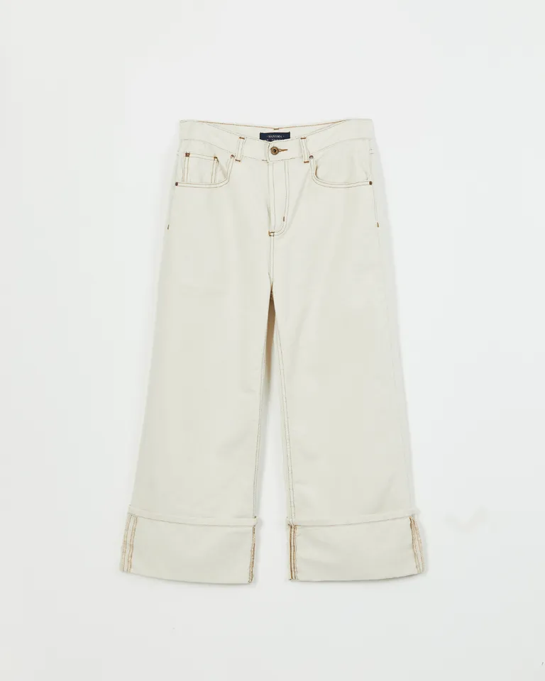 Pantalón de jean wide leg con tiro bajo y ruedo con dobladillo marcado de Wanama