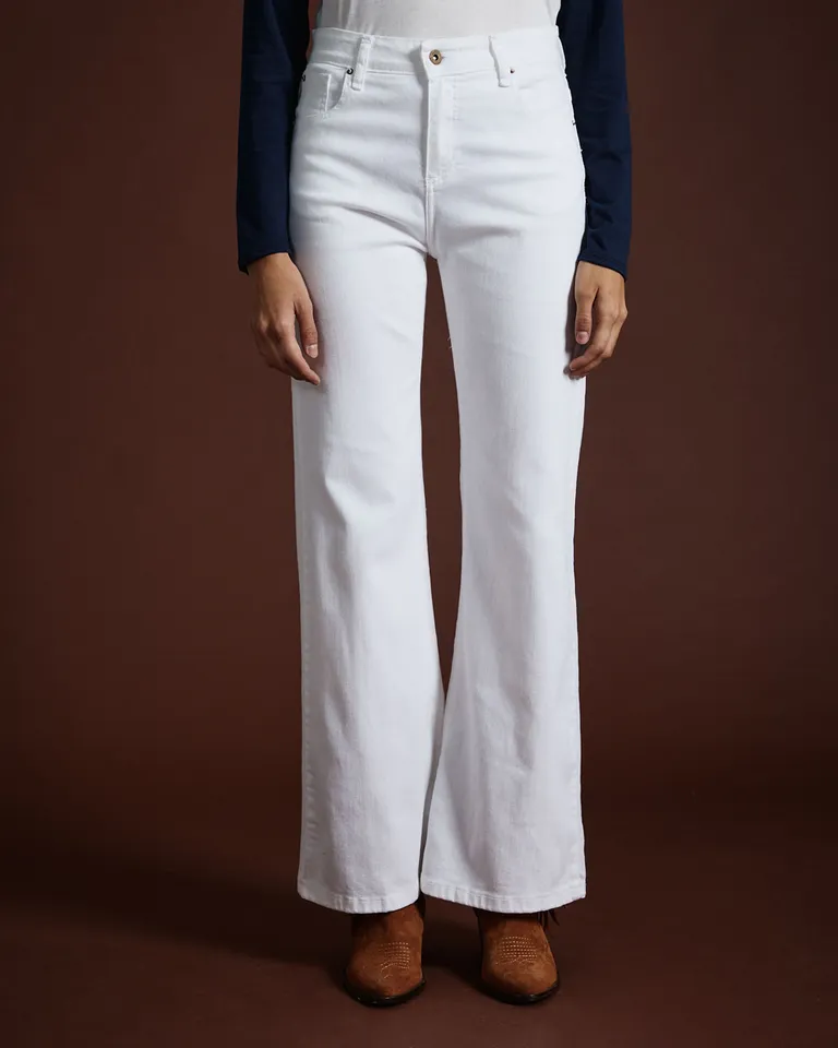 Pantalón de corte boot cut con tiro alto, diseñado con un ajuste preciso en cadera y muslos que se ensancha suavemente desde la rodilla. Una prenda versátil y esencial para completar cualquier look diario, ofreciendo comodidad y una silueta favorecedora.