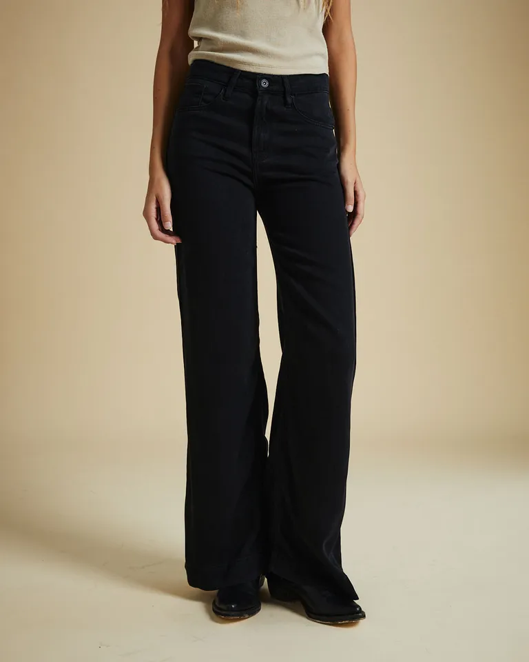 Pantalón de mujer tiro alto con corte de bota ancha y diseño clásico sin estampa de Wanama