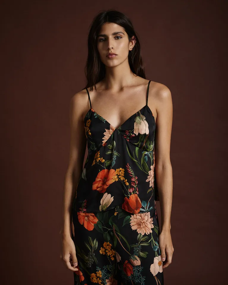 Top con escote en V, breteles finos y estampado botánico de flores de Wanama