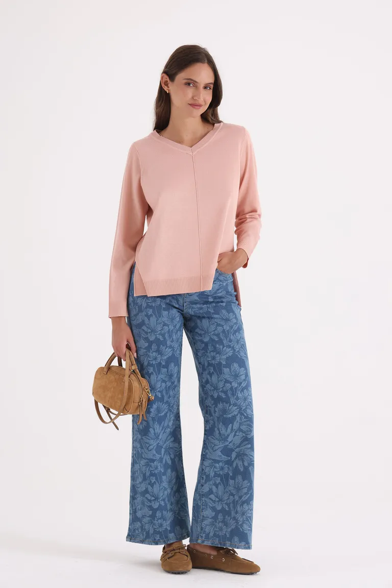 Sweater femenino con diseño de escote en V y calce relajado. Esta prenda ofrece un estilo versátil y cómodo, ideal para crear conjuntos casuales o elegantes. Con una caída fluida que se adapta a diversas figuras, es un básico indispensable en el armario para quienes buscan funcionalidad y elegancia en su vestimenta diaria.